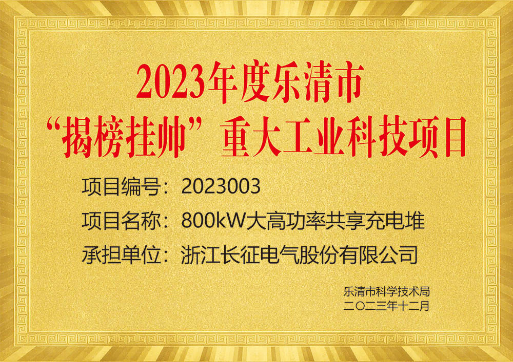 2023年度樂清市“揭榜掛帥”重大工業科技項目