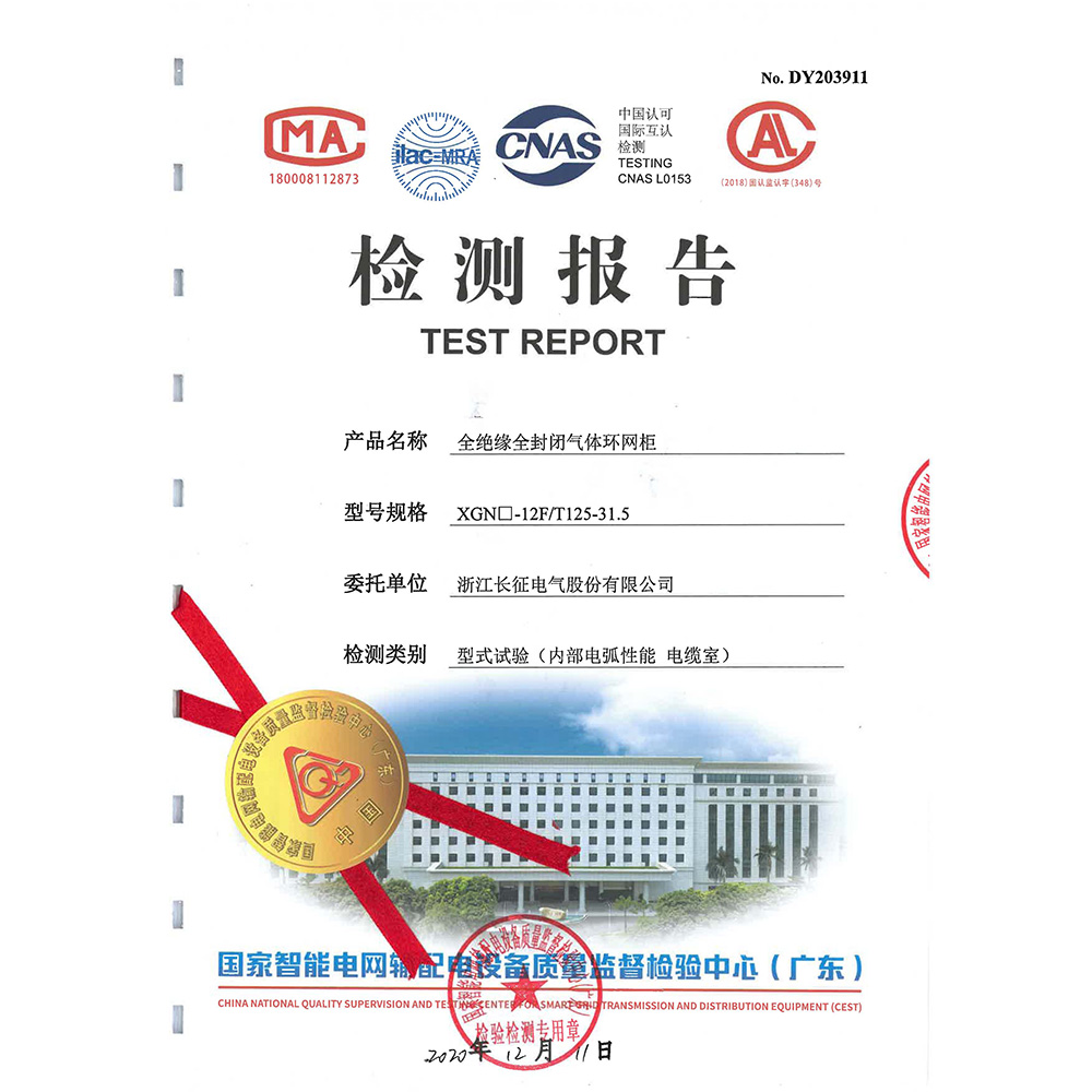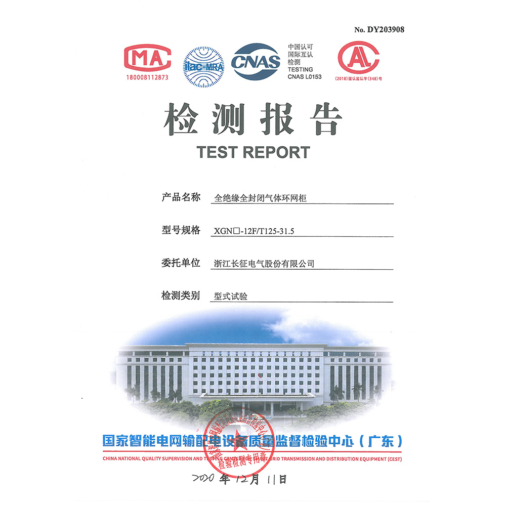 XGN□-12F/T125-31.5全絕緣全封閉氣體環網柜 檢測報告