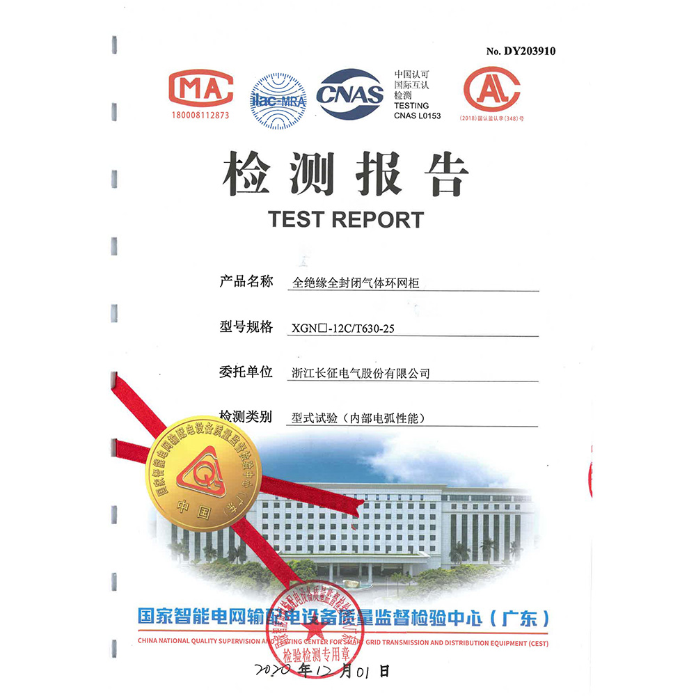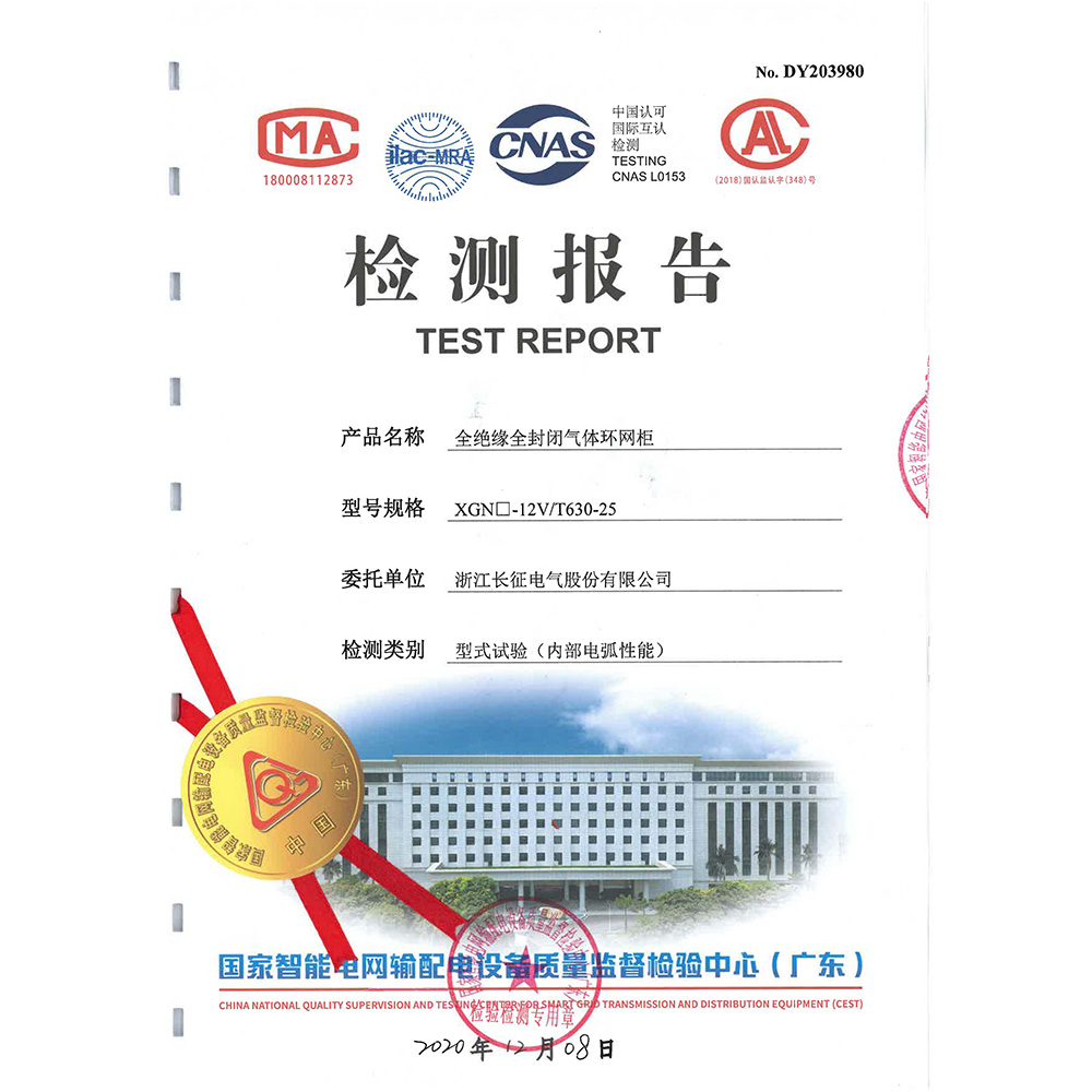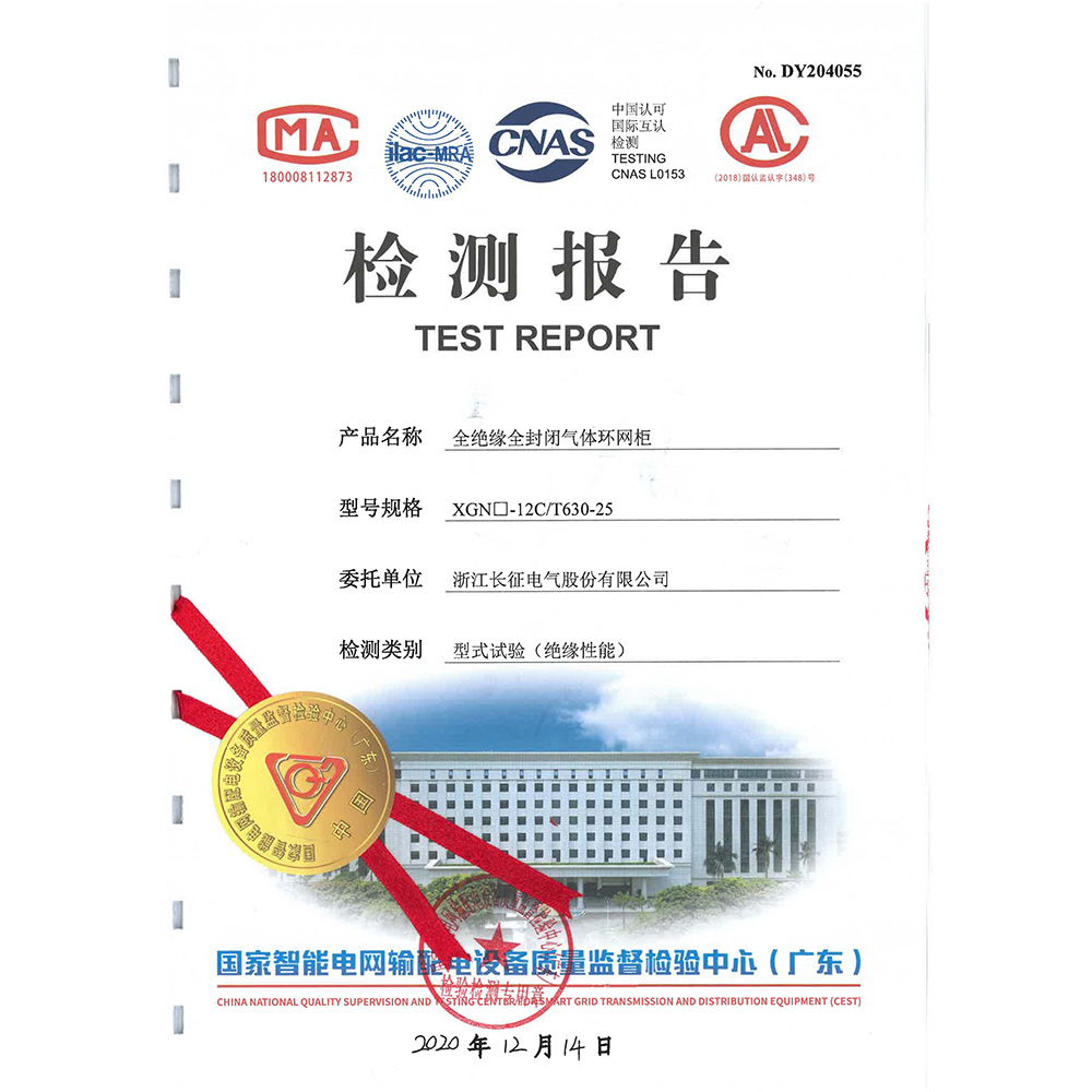 XGN□-12V/T630-25全絕緣全封閉氣體環網柜 檢測報告