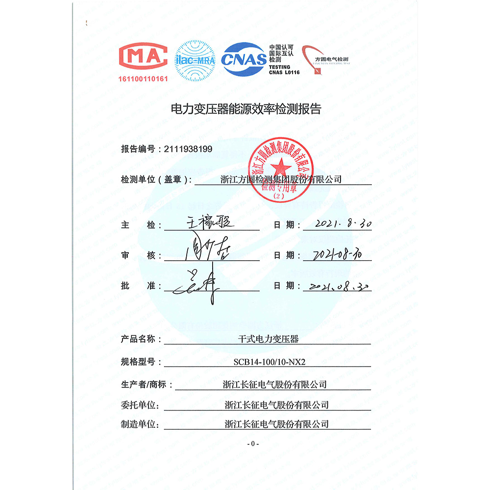 SCB14-100/10-NX2干式電力變壓器 檢測報告