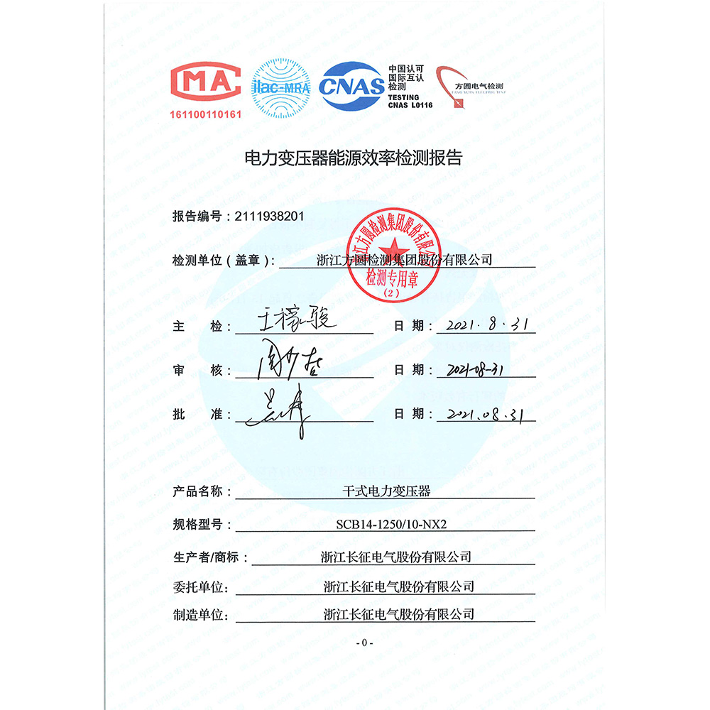 SCB14-1250/10-NX2干式電力變壓器 檢測報告