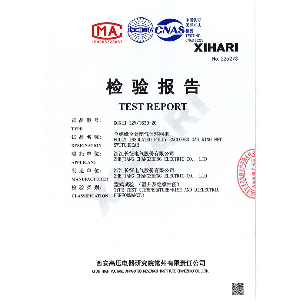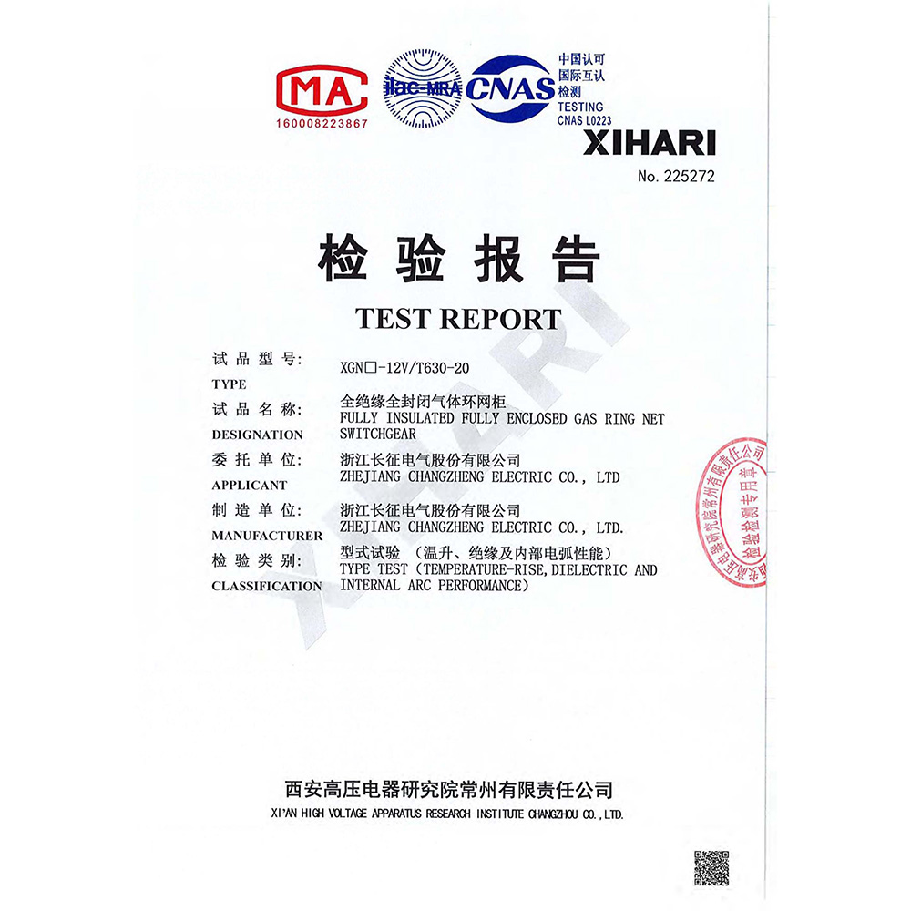 XGN□-12V/T630-20全絕緣全封閉氣體環網柜 檢驗報告