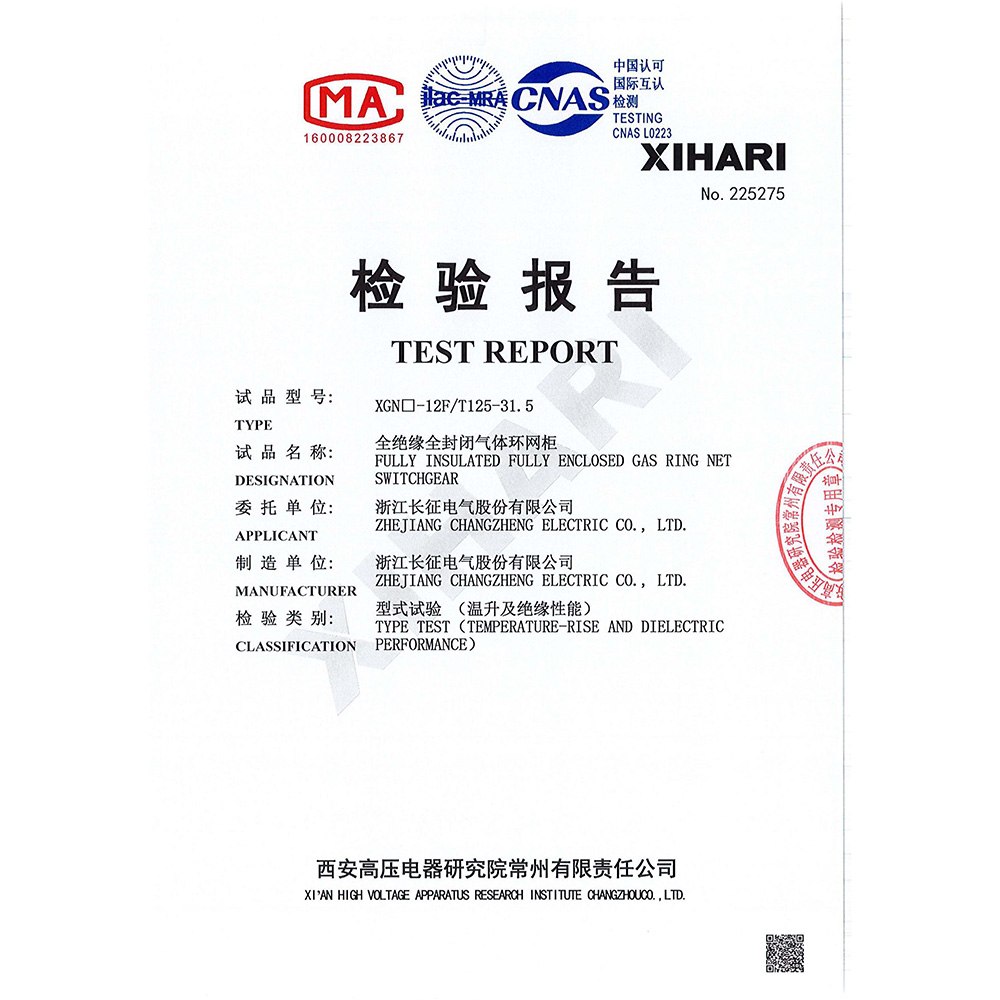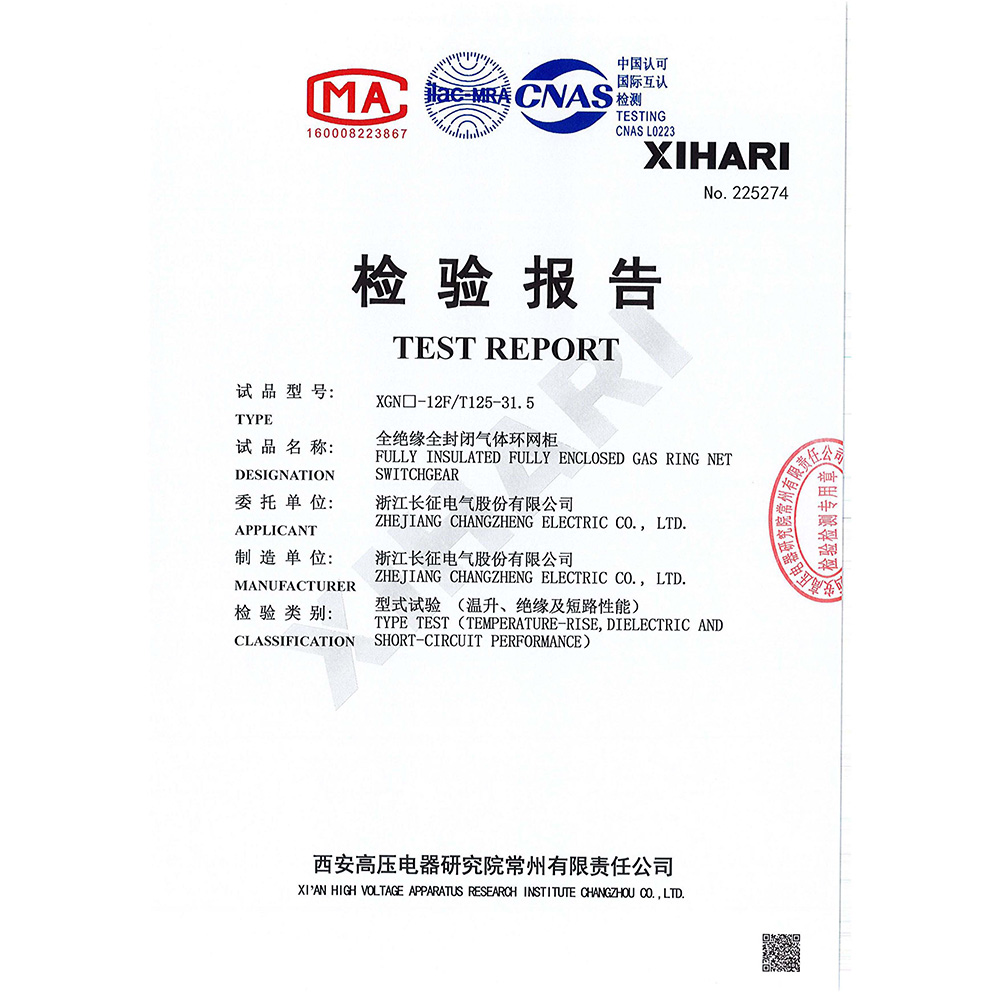 XGN□-12F/T125-31.5全絕緣全封閉氣體環網柜 檢驗報告