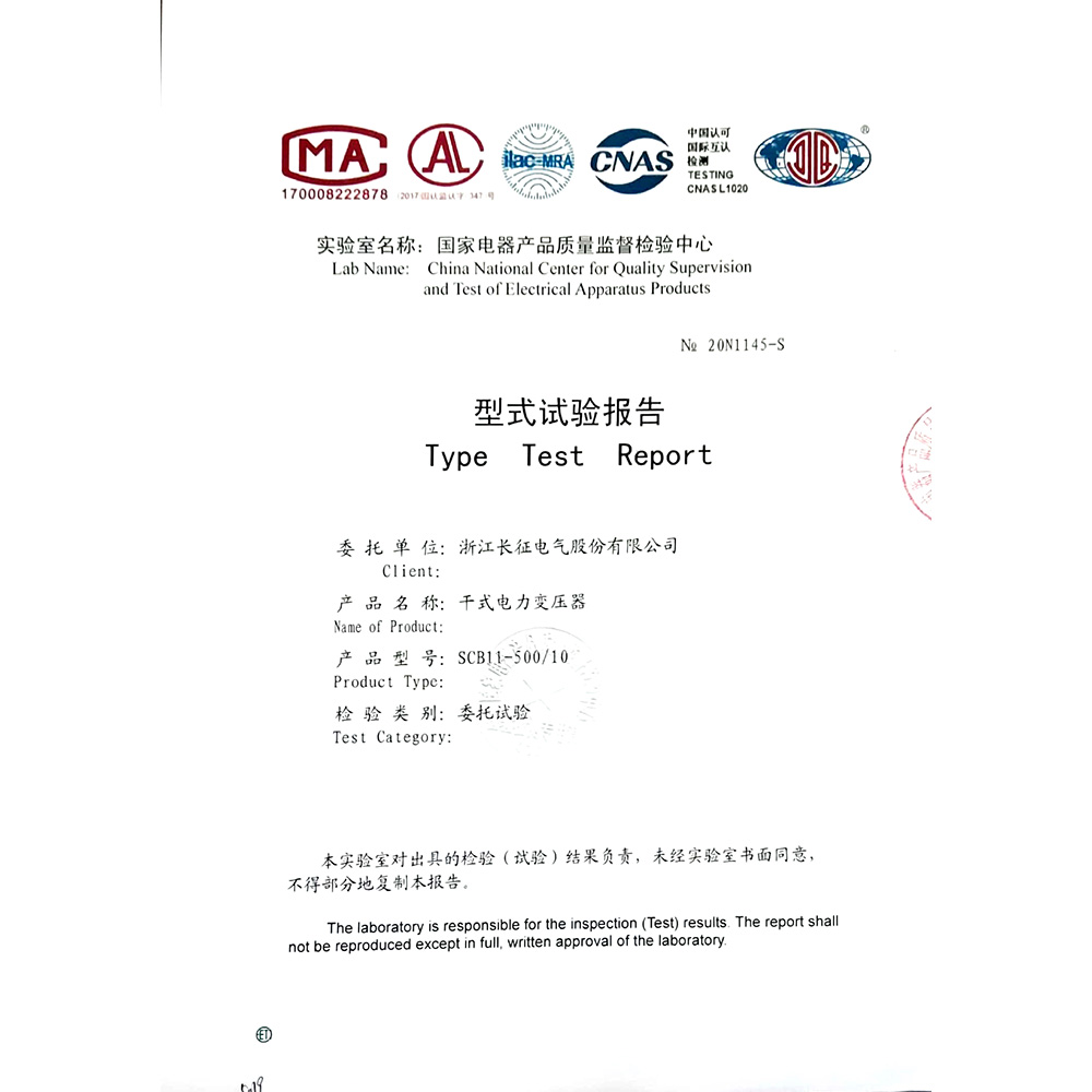 SCB11-500/10干式電力變壓器 型式試驗報告