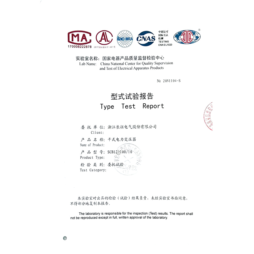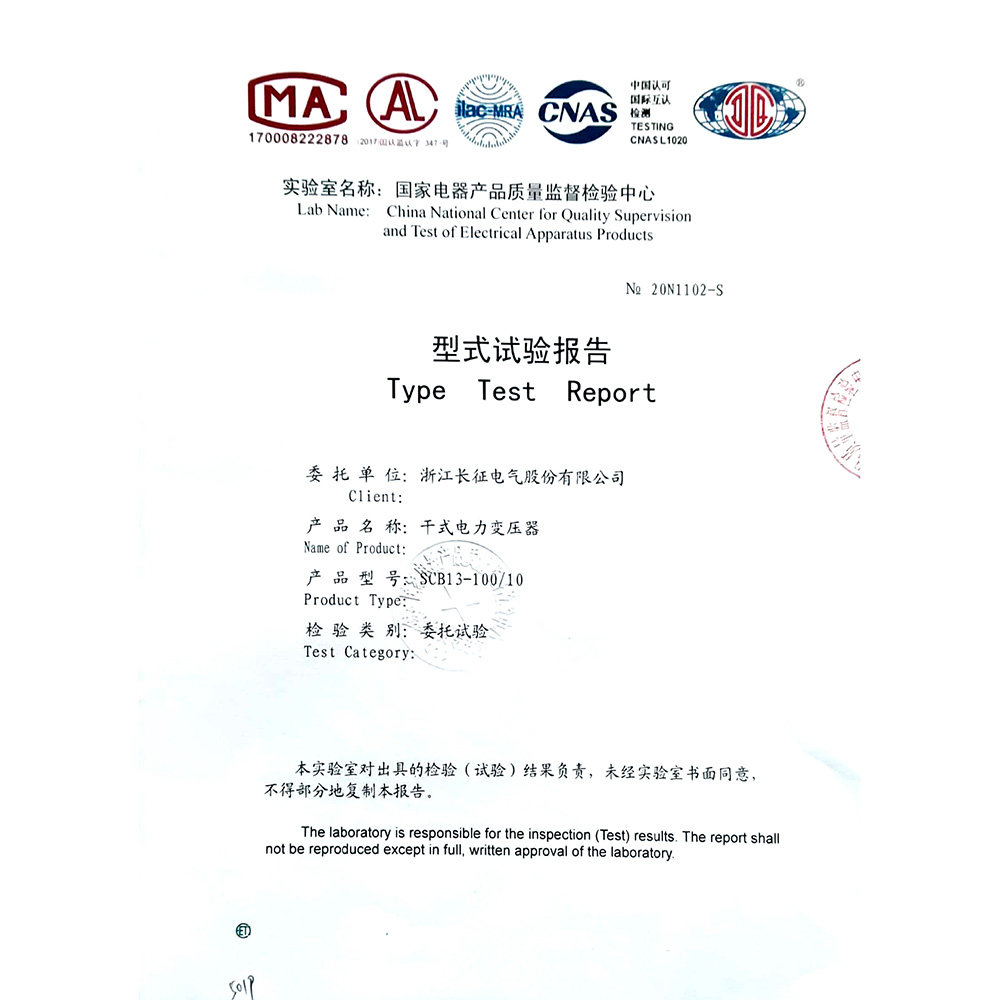 SCB12-100-10干式電力變壓器 型式試驗報告