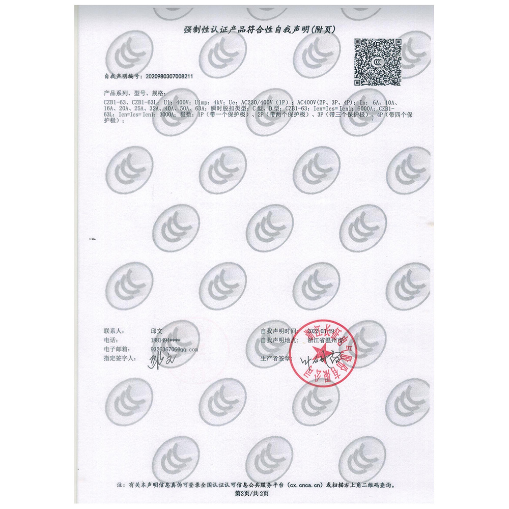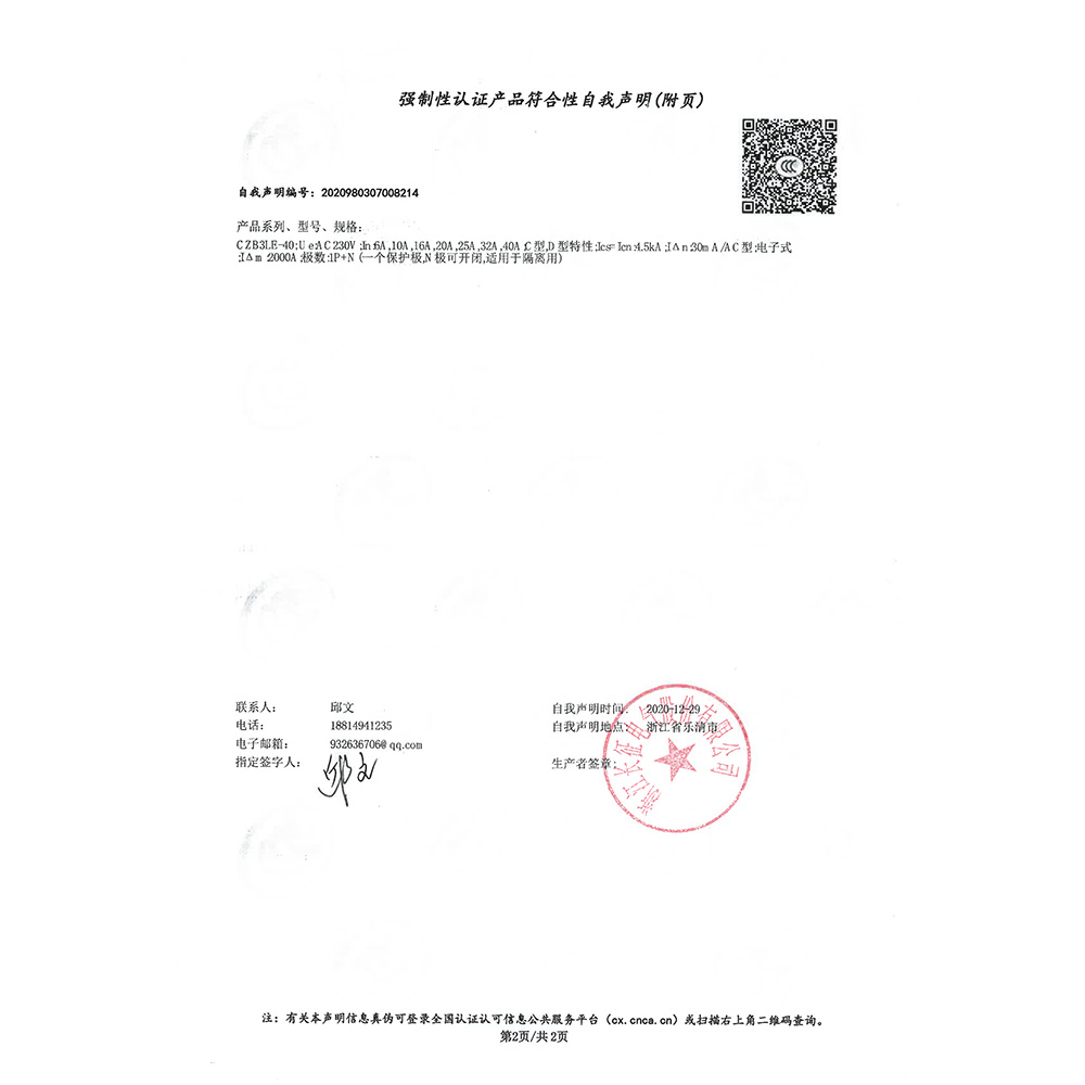 CZB3LE-40強制性認證產品符合性自我聲明(附頁)