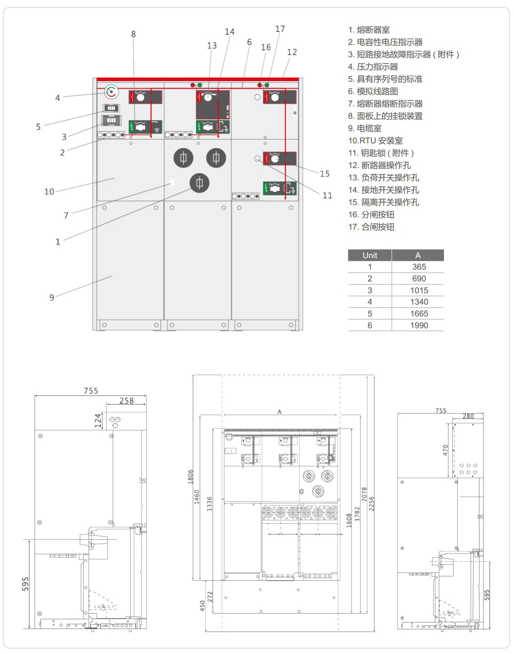| C | 標(biāo)準(zhǔn)單套管負(fù)荷開(kāi)關(guān)單元 | - | 母線頂套管 |