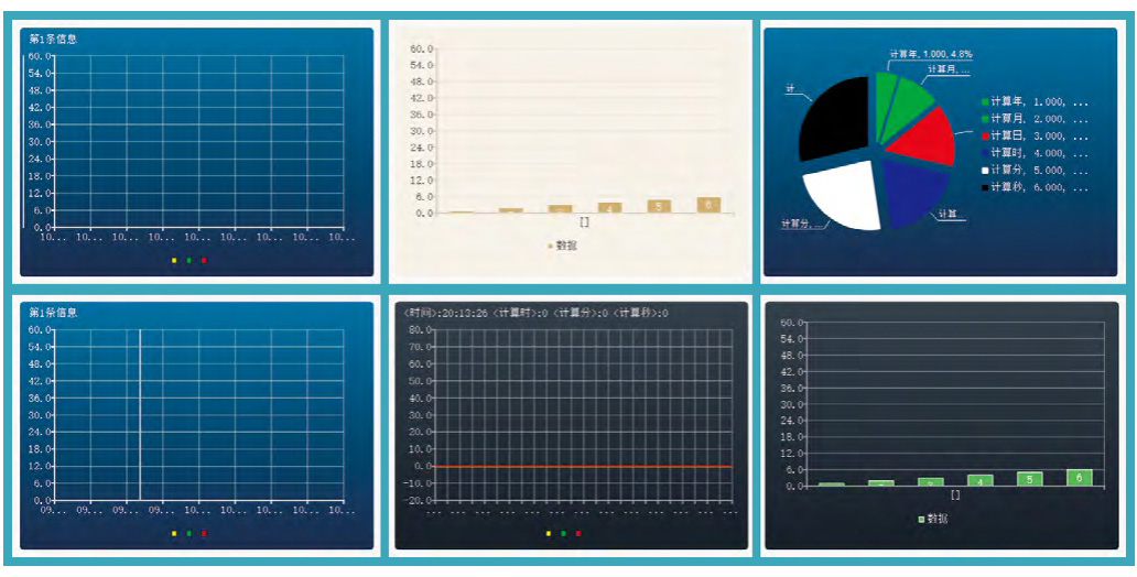 2、圖元展示● 支持多種顯示方式,餅狀圖、柱狀圖、儀表盤、溫度計、圖片與動畫等
